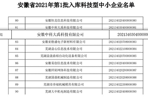 入選安徽省2021年第一批入庫科技型中小企業