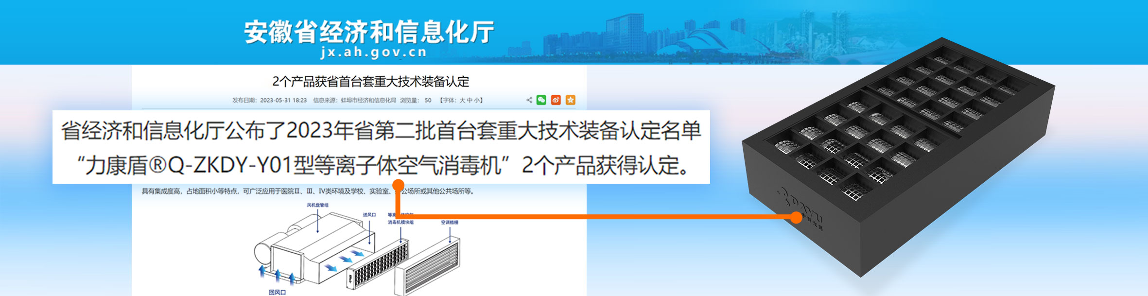 力康盾?ZKDY-G-180-P型等離子體空氣消毒機入選2024年度第三批安徽省首臺套重大技術裝備,評定等級:國內先進
