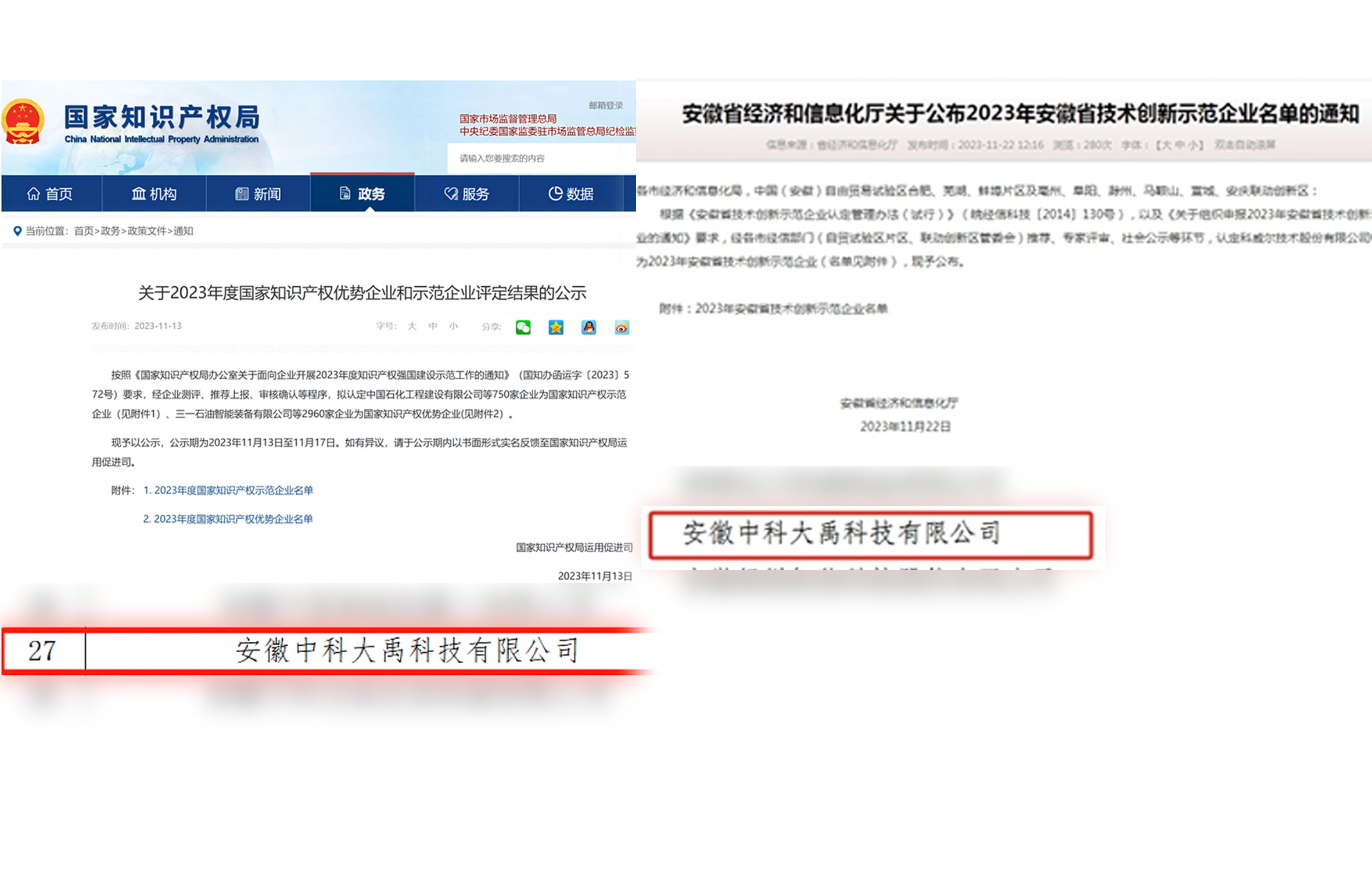評定為2023年度國家知識產權優(yōu)勢企業 入選2023年安徽省技術創(chuàng)新示范企業名單
